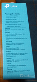 Tp-link 4G LTE Mobile Wi-Fi M7350: dispositivo che permette la connessione WiFi mobile. Supporta reti 2G, 3G, 4G. Permette di condividere connessione 4G con più dispositivi, per un massimo di 10, in casa e in mobilità. Fino a 150 Mgps di download. Display a colori.