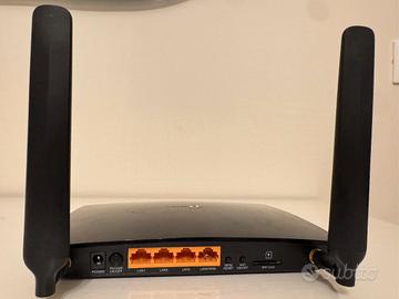Vendo Tp-Link AC750 Wireless Dual Band 4G LTE Router usato in ottime condizioni con caricatore compreso. Vendo ad un prezzo simbolico di 20 Euro. Nuovo costa 60 Euro. Ottimo se non si ha Adsl o fibra ma si ha una sim 4g. DESCRIZIONE: Router wireless 4G LTE dual-band con Wi-Fi che funziona nello standard AC750 TP-Link Archer MR200. Grazie al modem 4G LTE integrato e allo slot per scheda SIM, è sufficiente inserire la scheda SIM e accendere il dispositivo. Connettersi a un Wi-Fi veloce e stabile su una rete 4G LTE non è mai stato così facile.