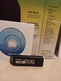 TP-LINK Antenna wireless Adattatore WIFI WIRELESS N USB 300Mbps Modello: TL-WN821N Mai usato, condizioni pari al nuovo, perfettamente funzionante.