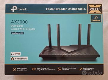 Usato religiosamente e completo di ogni accessorio originale. Supporta Wi-Fi 6 Dual Band con 2402Mbps su 5GHz e 574Mbps su 2.4GHz, garantisce streaming fluido e download veloce. Connessioni simultanee lag-free, supporta MU-MIMO e OFDMA. La copertura wi-fi è ottimale, testata in un raggio di 30-40m. Installazione semplice e sicurezza avanzata con buona configurabilità.