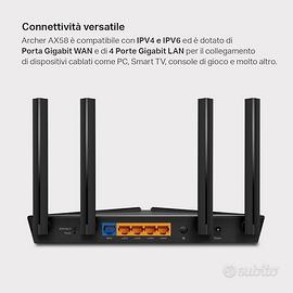 TP-Link Archer AX58 AX3000Mbps Router WiFi 6 Dual-Band, 4 Porta Gigabit, 2402Mbps su 5 GHz e 574Mbps su 2,4 GHz, 4 Antenne Ad Alto Guadagno, Parental Control, Rete Ospiti, QoS, EasyMesh, WPA3, Alexa.