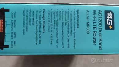 Router LTE 4G tp-link con 4 porte 1Gb di cui una configurable per WAN (ad esempio verso un router FTTH), due antenne orientabili e slot per SIM in formato NANO. Velocità di download fino a 300Mbps. Doppio WiFi a 2.5 e 5 GHz. Usato per circa un anno su rete PosteMobile senza alcun problema. Firmware aggiornabile da internet (nuova versione già disponibile). Già riportato alle impostazioni di fabbrica. Confezione originale completa di accessori. Senza SIM.