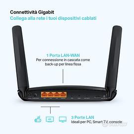 1 Porta Gigabit LAN/WAN – Per collegamento in cascata al router dell'operatore, come connessione di back-up in caso di down della linea fissa