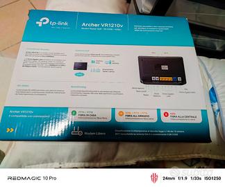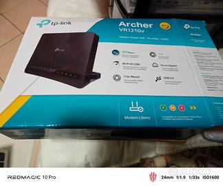 Vendo modem router TP-Link Archer VR1210v in ottime condizioni, completo di scatola originale e accessori (alimentatore, cavi).