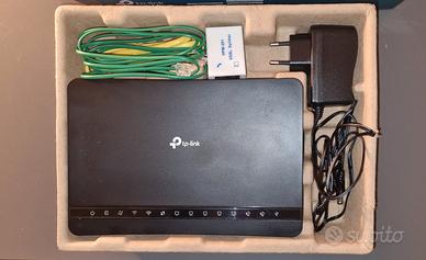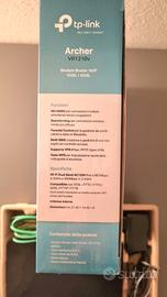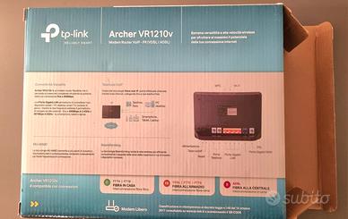 TP-Link Archer VR1210v. Banda Wi-Fi: Dual-band (2.4 GHz/5 GHz), Wi-Fi standard: Wi-Fi 5 (802.11ac), Intervallo di trasferimento dei dati WLAN (max): 2167 Mbit/s. Tipo di interfaccia LAN Ethernet: Gigabit Ethernet, Velocità trasferimento Ethernet LAN: 10,100,1000 Mbit/s, Tecnologia di cablaggio: 10/100/1000Base-T(X). Algoritmi di sicurezza supportati: 64-bit WEP, 128-bit WEP, WPA, WPA-PSK, WPA2, WPA2-PSK, Sicurezza firewall: NAT, SPI. Protocollo di commutazione: IPv4, IPv6, Protocollo di routing: RIP-1, RIP-2, Protocolli di gestione: HTTP / HTTPS, SSL. Tipo di prodotto: Router portatile, Colore del prodotto: Nero, Indicatori LED: LAN, Collegamento, Potenza, status, WAN