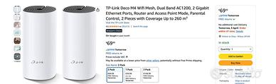 Vendo TP-Link Deco M4 Mesh WiFi – kit da 2 unità (AC1200). Condizioni buone, funzionano perfettamente. Venduti senza scatola. Caratteristiche: •sistema Mesh Wi-Fi stabile •copertura ampia per casa •facile configurazione via app Ideale per migliorare il Wi-Fi in casa. 📦 Spedizione disponibile 💬 Inglese preferito