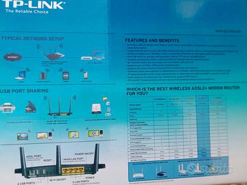 vendo per inutilizzo, TP-LINK TD-W8970 Modem Router Gigabit ADSL2+ Wireless N 300Mbps USB , usato poco, in condizioni perfette con imballo originale ed accessori