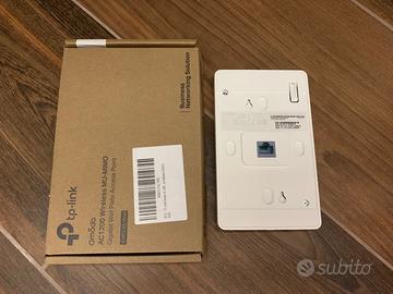 Vendo ottimo access point TP-Link EAP235-wall, modello AC1200, super compatto, installabile direttamente a parete su una scatola elettrica e 3 porte ethernet addizionali. Ottima copertura e gestione sia con IP locale che in cloud (via app Omada). Usato solo per qualche settimana, praticamente nuovo in confezione originale e ancora in garanzia (acquisto giugno 2024, consegno insieme alla fattura). Vendo soltanto perché ho razionalizzato l’organizzazione della rete di casa e non ne ho più bisogno.