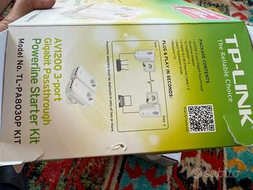 Vendo kit Powerline TP-Link AV1200 modello TL-PA8030P KIT, ideale per portare Internet veloce in tutta la casa tramite l’impianto elettrico, senza tirare cavi.