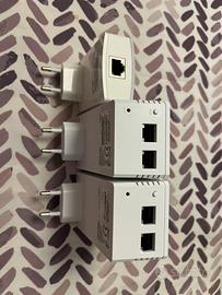 Vendo 2 Tp-link powerline extender av500 300Mbps con il powerline sul quale connetterli. Vendo causa inutilizzo. I profotti sono in ottime condizioni non presentano graffi o segni d’usura. Ottimi ripetitori wi-fi per raggiungere posti di casa dove il segnale del router non arriva completamente, ciò possibile perché trasmettono il segnale via i cavi elettrici normali.