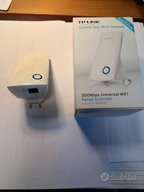 VENDO COME NUOVO TP-LINK RANGE EXTENDER 300Mbps Universal WI-FI estensore di segnale adatto per qualsiasi linea (ADSL/FIbra ecc. ecc.) perfettamente funzionante e completo di scatola. Prezzo affare euro 20,00 no perditempo. Per info cell. 3492889677 email: puleo@inwind.it Caratteristiche Velocità wireless - fino a 300Mbps per streaming video ed online gamingModalità Range Extender - Incrementa il segnale wireless in aree prima inaccessibili o difficili da raggiungereTasto RE - Impostazione della crittografia wireless rapida e intuitivaPorta LAN - Per la connessione dei dispositivi EthernetTether App - Per gestione semplice via smartphone e tabletSmart LED - Posizionamento rapido grazie al segnale LED