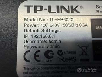 TP-Link TL-ER6020 SafeStream VPN Router GigaBit doppia WAN. Oggetto Usato, Funzionante ed in Buone Condizioni. Presenta Lievi Segni di Usura.