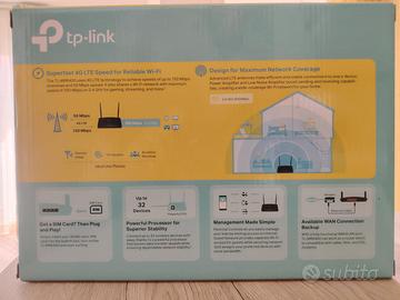 Vendo per sostituzione tipologia di rete TP-Link TL-MR6400 Router 4G LTE fino a 150 Mbps, Wireless N300Mbps, Router WiFi con Sim, Porta LAN/WAN, Senza Configurazione, Antenne Staccabili, Modem 4G Sim, Parental Control, Rete Ospiti, QoS.