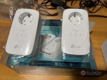 TP-Link TL-PA8030P KIT AV1300 Powerline Starter Kit, con presa pass-through, velocità fino a 1300 Mbps, 2x2 MIMO, HomePlug AV2, Green Powerline, Plug and Play, CPU Qualcomm, bianco, 3 porte Gigabit.