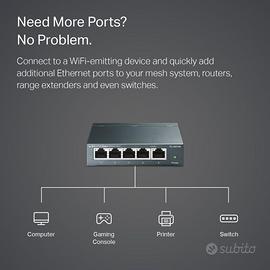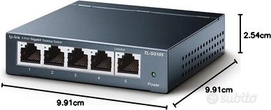 EFFICIENZA ENERGETICA: TL-SG105 regola automaticamente i consumi in base alle connessioni attive e alla lunghezza del cavo. Completo di manuali e alimentatore esterno. I costi di spedizione sono a carico dell'acquirente.