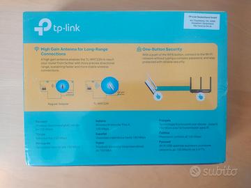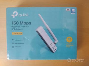 Vendo per mancato utilizzo TP-LINK TL-WN722N Adattatore USB Wireless Alto Guadagno TL-WN722N Scheda Wireless N150 USB Eccellente velocità wireless N fino a 150 Mbps, ideale per streaming video o chiamate via Internet Facile configurazione della sicurezza wireless premendo semplicemente il tasto QSS Antenna da 4dBi removibile, aumenta notevolmente la potenza del segnale Compatibile con Windows 11*/10/8.1/8/7/XP, Mac OS X, Linux Velocità di trasmissione wireless 150Mbps e per streaming video, online gaming e chiamate via Internet Antenna esterna ad alto guadagno, offre migliori prestazioni rispetto a quelle tradizionali interne Facile configurazione della sicurezza wireless premendo semplicemente il tasto QSS Supporta WEP 64/128, WPA /WPA2/WPA-PSK/WPA2-PSK(TKIP/AES), IEEE 802.1X Antenna removibile che consente una migliore orientabilità e l'upgrade con un antenna più potente L'utility in dotazione permette un installazione facile e veloce Perfettamente compatibile con i prodotti 802.11b/g/n Supporto modalità ad-hoc ed infrastructur. NUOVA NON APERTO NELLA SUA CONFEZIONE ORIGINALE CON CELLOFANE