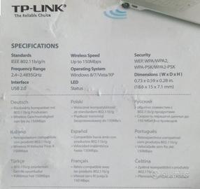 Nano USB wireless N TL-WN725N consente la connessione di un computer desktop/notebook alla rete wireless a 150 Mbps