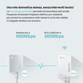 TP-Link TL-WPA4220 KIT Powerline Kit AV600Mbps e Wi-Fi 300Mbps, Homeplug AV2, Porte Ethernet, Plug & Play, Compatibile con Router, Tecnologia Powerline Avanzata, Facile Gestione