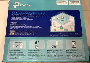 Kit completo di scatola tutto come da foto. TL-WPA7817 KIT è un kit powerline composto da due unità: la prima dialoga col router principale, mentre la seconda funge da extender e può essere posizionata ovunque sia disponibile una presa di corrente, per portare la connessione in ogni stanza, superando ostacoli come muri molto spessi e lunghe distanze.