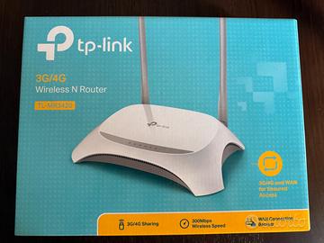 Router wireless TP-Link TL-MR3420 (standard N fino a 300 Mbps) con supporto 3G/4G, completo di chiavetta Internet LTE 4G Alcatel (SIM non inclusa).