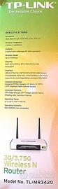 Occasione vendesi Router TP-Llink TL-MR3420 Router 3G/4G con porta USB per GSM Wireless N 300Mbps, NUOVO MAI USATO SOLO APERTO. Per avere connessione internet Wi-Fi ovunque. completo ovviamente di scatola, alimentatore e manuali.