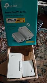 Kit tplink AV600 Powerline con WiFi extender per propagare il segnale internet in tutta la casa anche oltre le mura spesse o da un piano all'altro. Usato pochissimo e completo di scatola e cavo ethernet.