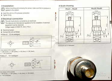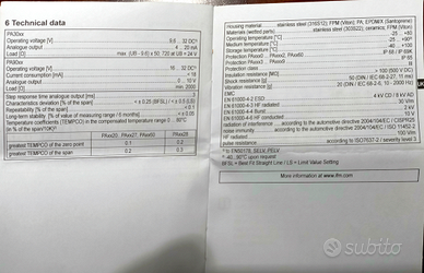Trasduttore di pressione nuovo, per informazioni tecniche consultare internet scrivendo IFM PA3060