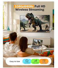 Trasmissione Full HD 1080P@60Hz: Goditi immagini fluide e nitide con lo streaming wireless a 1080P 60Hz. Bassa latenza e prestazioni stabili per riunioni, film e gaming