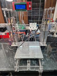 3: Prusa I3 Replica, recentemente smontata e riassemblata, sistemati tutti i cavi sulla scheda madre. Risponde a tutti i comandi ma va rivisto il gruppo estrusore poichè il supporto dell'Hotend non tiene piu' serrato il blocco. Da sostituire oppure ristampare. Nel contesto in buono stato. Piatto in vetro da sostituire ma ancora usabile.