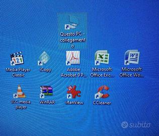 vendo della HP il monitor con il PC incorporato, modello All-in- One RTL8723BE 24 pollici bianco, con webcam per videoconferenze , 2 altoparlanti incorporati, posteriormente ci sono 4 prese USB, 1 presa HDMI, presa per cuffie, DVD-RW, CPU Intel Pentium J3710 1.6 GHz, 8 GB di RAM, Hard Disk 1.000 GB (1tiba), programmi caricati: Windows 10 a 64 bit, Adobe Acrobat 9 professional, Microsof Office, WinRar, VCL media play, Media play classic, CClean, Irfan View, e presente una striscia opaca verticale come si vede dalla foto