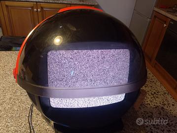 Philips Discoverer originale vintage, uno dei televisori più iconici e ricercati degli anni ’80. Design futuristico “space age” a forma di casco astronauta con visiera fumé apribile, perfetto come pezzo da collezione, arredo, studio creativo, showroom o setup retro gaming. Modello rarissimo Philips 14GR1220, schermo da 14”, colore rosso e nero, look unico che richiama l’estetica NASA e gli interni futuristici anni ’80/’90. Molto difficile da trovare in queste condizioni. Ideale per collezionisti di modernariato, design vintage, oggetti space age o appassionati di TV CRT e retro gaming. Dimensioni importanti ma compatte, presenza scenica incredibile. Un vero pezzo statement che arreda qualsiasi ambiente. Prezzi di mercato spesso tra 1.500€ e oltre 2.000€ per esemplari completi e ben conservati.
