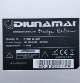 Lo schermo monitor TV è tenuto molto bene e perfettamente funzionante. Non presenta graffi né segni di usura. Colore bianco e design italiano. Completo di cavo alimentazione e telecomando. Tutto come da foto. Il modello è Diunamai 19WD-LE1200. Risoluzione HD ready 1440x900. Fluido, si vede molto bene. Adatto come monitor per gaming, come secondo monitor per PC o piccola TV. Rimango a disposizione per info o foto aggiuntive. Possibilità di spedizione o ritiro in zona con prova prodotto.
