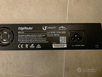 Router Ubiquiti EdgeRouter ER-8. Gestisce gli standard di comunicazione IEEE 802.1Q, IEEE 802.1x, IEEE 802.3, IEEE 802.3ab e IEEE 802.3u. Può essere gestito attraverso la pagina web, inoltre gestisce QoS. La memoria flash è di 4096 MB, invece la memoria interna di 2048 MB. Il router è dotato di processore MIPS64. Possiede i certificati CE, FCC e IC. Caratteristiche principali 8 porte Ethernet LAN (RJ-45) gestione intuitiva velocità massima del trasferimento dati attraverso Ethernet LAN - 1000 Mbit/s alto rendimento design moderno gestione attraverso pagina web - Modello ER-8. - Design rackmount.