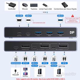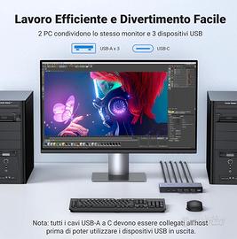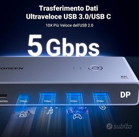 UGREEN Switch KVM Displayport 8K 60Hz 2 Ingressi 1 Uscita Switcher DP 1.4 4K 240Hz 1 Porta Tipo C 3 Porte USB A per Tastiera Mouse Disco Rigido Stampante Monitor con Controller e 2 Cavi 1M