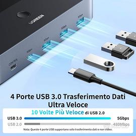 [Porte USB Ultraveloci] Lo switch KVM con 3 porte USB-A 3.0 e 1 porta USB-C 3.0 consente di condividere 4 dispositivi USB (come tastiera, mouse, disco rigido esterno, ecc.) tra 2 computer. Le quattro porte USB 3.0 consentono velocità di trasferimento dati fino a 5 Gbps, consentendo di trasferire file di dimensioni pari a 1 GB in pochi secondi. Inoltre, elimina la necessità di collegare e scollegare continuamente le periferiche, consentendoti di lavorare in modo più efficiente.