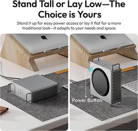 NON trattabile . Accessorio che riporta il mac mini m4 all estetica dei mac pro , oltre che a dissipare meglio il calore e facilitare la pressione del tasto di accensione. Informazioni su questo articolo Design Professionista: Con un design ispirato al Mac Pro, questo case darà al vostro Mac Mini un aspetto elegante e professionale. Ideale per qualsiasi workspace, questo case è progettato per essere sia pragmatico che stiloso Costruzione in Alluminio: Realizzato in alluminio, questo case offre una protezione robusta contro urti e graffi. La sua costruzione solida garantisce che il vostro dispositivo rimarrà intatto e sicuro ovunque vi portiate Ventilazione Ottimizzata: Il design con ventilazione ottimizzata assicura che il vostro Mac Mini funzioni a temperature ottimali, mantenendo il dispositivo fresco e protegendolo dall'overheating Facile Accesso alle Porte: Gli alti livelli di accessibilità ai porti dispositivi di periferica senza dover rimuovere il case. Questo design intelligente garantisce che il vostro Mac Mini rimanga sempre connesso e pronto all'uso Personalizzazione e Portabilità: Godetevi la libertà di personalizzare il vostro case con adesivi o design personalizzati. Il manico incorporato rende il case facile da trasportare, rendendo il vostro Mac Mini sempre pronto per l'uso ovunque vi siate