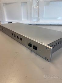 Disponibili 8 pezzi. Marca Ubiquiti Networks Riferimento UBNT-USG-PRO-4 EAN 810354022821 2 porte Gigabit Ethernet; 2 porte Gigabit RJ45 / SFP; 1 RJ45 porta console seriale; 2,4 milioni di pacchetti al secondo per 64 - pacchetti di byte; 4 Gbps velocità di linea totale per i pacchetti di 512 byte o maggiore; Integrato e gestito con v4.x UniFi controller; Sicuro off - gestione del sito e il montaggio; Gestione CLI per gli utenti avanzati; Specifiche Tecniche: Dimensioni: 484 x 44 x 164 mm (19,06 x 1,73 x 6,46 "); Peso: 2,3 kg (5,07 lb); Max. Consumo energetico: 40 W; Alimentazione: AC Interna / DC adattatore di alimentazione, 60W (24 V, 2.5 A); Potenza di ingresso: 110 - 240 VAC; LED: Stato del sistema; Data port Velocità / Link / Activity; Interfacce di rete: Serial Port Serial Console Port RJ45; Data port: 10/100/1000 porte RJ45; (2) 10/100/1000 Porte combinazione RJ45 / SFP; Livello di prestazione 3 Forwarding: Packet Size: 64 byte 2.400.000 pps; Packet Size: 512 byte o superiore a 4 Gbps (Linea Rate); Processore: dual-core da 1 GHz, MIPS64 con accelerazione hardware per Packet Processing; Memoria di sistema: 2 GB di RAM DDR3; On-Board Flash Storage: 4 GB; Certificazioni: CE, FCC, IC; Rackmount: Sì; Temperatura di esercizio da: -10 a 45 ° C (da 14 a 113 ° F); Umidità di funzionamento da: 10 a 90% senza condensa