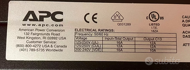 Vendo due unità APC Rack PDU (Power Distribution Unit) per armadi rack, ideali per data center, server e apparecchiature di rete. Caratteristiche principali: Marca: APC Modello: AP7551 Tipo: Rack-Mount PDU Connessioni: 12 prese IEC C13 per ciascuna unità Montaggio: 1U orizzontale Condizioni: Usato, in ottimo stato Perfetto per distribuzione alimentazione in rack professionali. Prezzo: € 35,00 per entrambe le unità Oppure € 19,00 cad. Articoli visionabili su richiesta È possibile ritirare il materiale, previo appuntamento, a due passi dall’uscita 10 del GRA dal lunedì al venerdì dalle 8:00 alle 11:30 e dalle 13:00 alle 16:30. Nostro riferimento Req. 373393-90 / B1-FL-9B