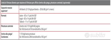 Vendesi Stazione di finitura Business Ready (BR) con modulo Booklet Maker originale per multifunzione Xerox AltaLink serie C8130 / C8135 / C8145 / C8155 / C8170. È l'accessorio professionale definitivo per chi deve produrre internamente brochure e cataloghi finiti. Funzioni Principali: •Creazione Libretti: Piegatura e pinzatura centrale automatica (fino a 15 fogli/60 pagine). •Pinzatura Multi-posizione: Pinzatura standard fino a 50 fogli (80g). •Capacità Elevata: Stacker superiore da 500 fogli e vassoio finitore da 1.500 fogli. •Versatilità: Gestisce formati fino a SRA3 e grammature elevate per copertine. •Compatibilità: Specifica per serie AltaLink C8100 e B8100 (richiede interfaccia Cradel/Horizontal Transport). più ponte. Ritiro a mano o spedizione da concordare.