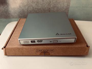 Unità DVD-RW esterna SALCAR, nuova e mai usata. Soluzione portatile e affidabile per leggere e scrivere CD e DVD sul tuo PC o Mac.