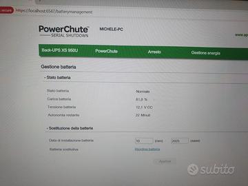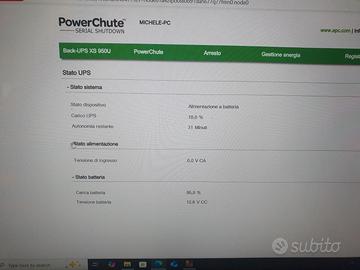 Unita' UPS APC BACK-UPS 950 Mod. BX950U-GR - Usato e funzionante Batteria nuova Cavo USB per la gestione unita' con Sw PowerChute Cavo telefonico incluso per la connessione al router con connettivita' FTTC Pagamento contestuale alla presa visione