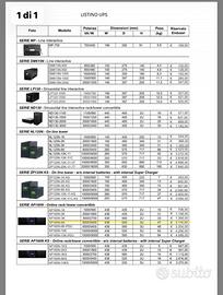 PREZZO UPS senza BTTERIE d'acquistare separatamente n. 16 batterie 12 volt 9Ah UPS con tecnologia a doppia conversione che nello specifico fornisce una perfetta protezione ad attrezzature informatiche, sistemi di comunicazione e strumenti computerizzati. Protegge l’attrezzatura elettronica sensibile da problemi elettrici di base come per esempio interruzioni di corrente, cali di tensione, sovratensioni, sbalzi di tensione ed anomalie di rete. Questo tipo di problemi possono corrompere dati critici, distruggere sessioni di lavoro non salvate e danneggiare l’hardware, con la conseguenza di ore di produttività perse e/o costose riparazioni. Con l’UPS Online R/T si possono eliminare gli effetti causati dai disturbi di corrente e salvaguardare le apparecchiature. L’UPS è in grado di adattarsi alla flessibilità dei dispositivi di rete, rendendolo la scelta migliore per proteggere LAN, server, postazioni di lavoro e altra attrezzatura elettronica.