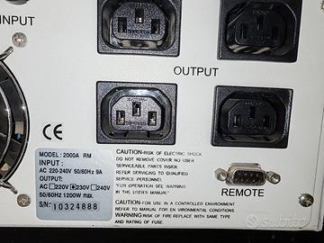 Vendo due gruppi di continuità da rack. Uno da 2000VA, l'altro da 3000VA. Usati. Ciascuno monta 6 batterie al piombo. Ho 5 batterie buone ed una a mezzo servizio con le quali ho testato la ricarica e l'uscita. Vendo anche separatamente. Il primo prende anche le 5 batterie buone, del 2022 (se le vuole). Gli UPS sono fermi da fine 2022. 80€ un UPS con le batterie. 20€ senza. Consegna a mano a Torino. Spedizione con tutto subito.