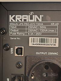 Vendo UPS da 360W 720VA in buone condizioni generali funzionante al 100% completo di scatola originale, ho sostituito la batteria in dicembre con una di qualità specifica per UPS.