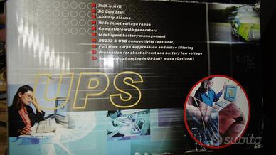 Gruppo di continuità - Controllo UPS tramite CPU - Stabilizzatore di tensione AVR - Ampia tolleranza sulla tensione di ingresso senza intervento da batteria - Ricarica delle batterie anche da UPS spento - COLD START possibilità di accensione da batteria - AUTO RESTART ripristino automatico a ritorno di rete - Protezione rete telefonica e informatica tramite connettore RJ11 e porta di comunicazione - Autoapprendimento frequenza ingresso 50/60 Hz (solo versione LCD - GREEN FUNCTION spegnimento automatico in assenza di carico e di rete). Peso e dimensioni ridotte - Mantello in metallo di colore nero -