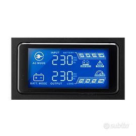 Display LCD con voltaggio In/Out, modalità funzionamento, livello di carico e livello batteria