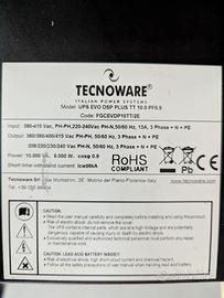 Vendo UPS industriale Tecnoware EVO DSP PLUS TT 10.0 PF0.9, modello FGCEVDP10TT/2E, completo di batterie interne.