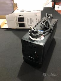 Modello line interactive con potenza 750VA, ideale per proteggere PC, router e dispositivi elettronici da sbalzi di corrente e blackout.