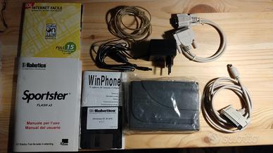 Confezione originale, comprende il modem, alimentatore, cavo telefonico, cavi di connessione per PC e Mac (aggiunto), driver per Win 95, Winphone 1.05 in italiano, manualistica in italiano.