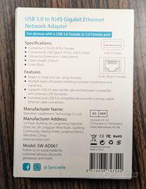 USB 3.0 to RJ45 Gigabit Ethernet Network Adapter